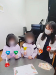 ご家族の方々にピアノソロや連弾、歌や打楽器アンサンブル、ミュージックベルなどのプログラムを聴いて